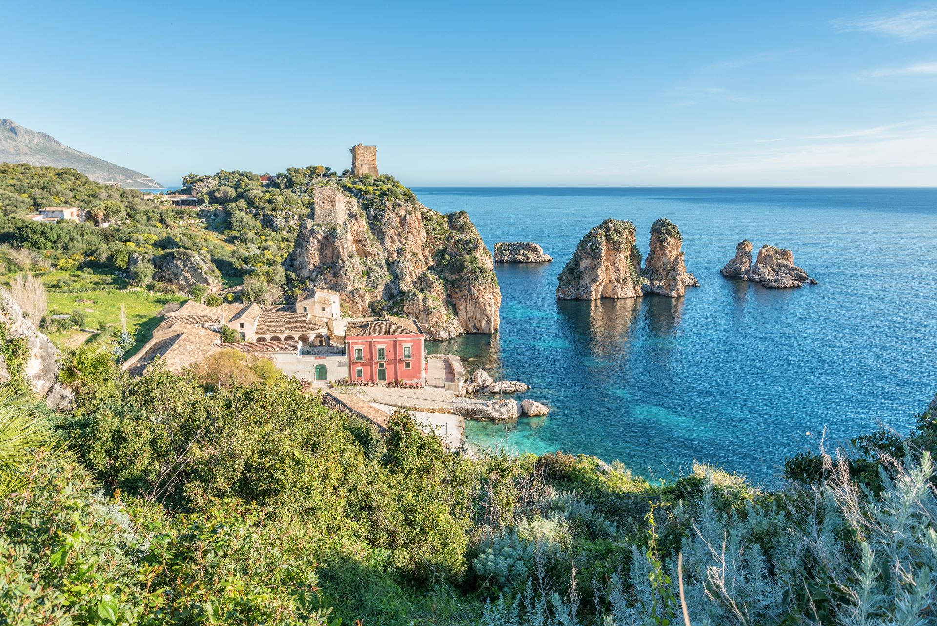 Arrivée en 1 heure et demie environ au port de Castellammare del Golfo, joyau incontournable enchâssé dans un golfe aux eaux turquoise et dominé par un promontoire sur lequel les Arabes ont bâti le château surplombant la mer qui donne son nom au village.